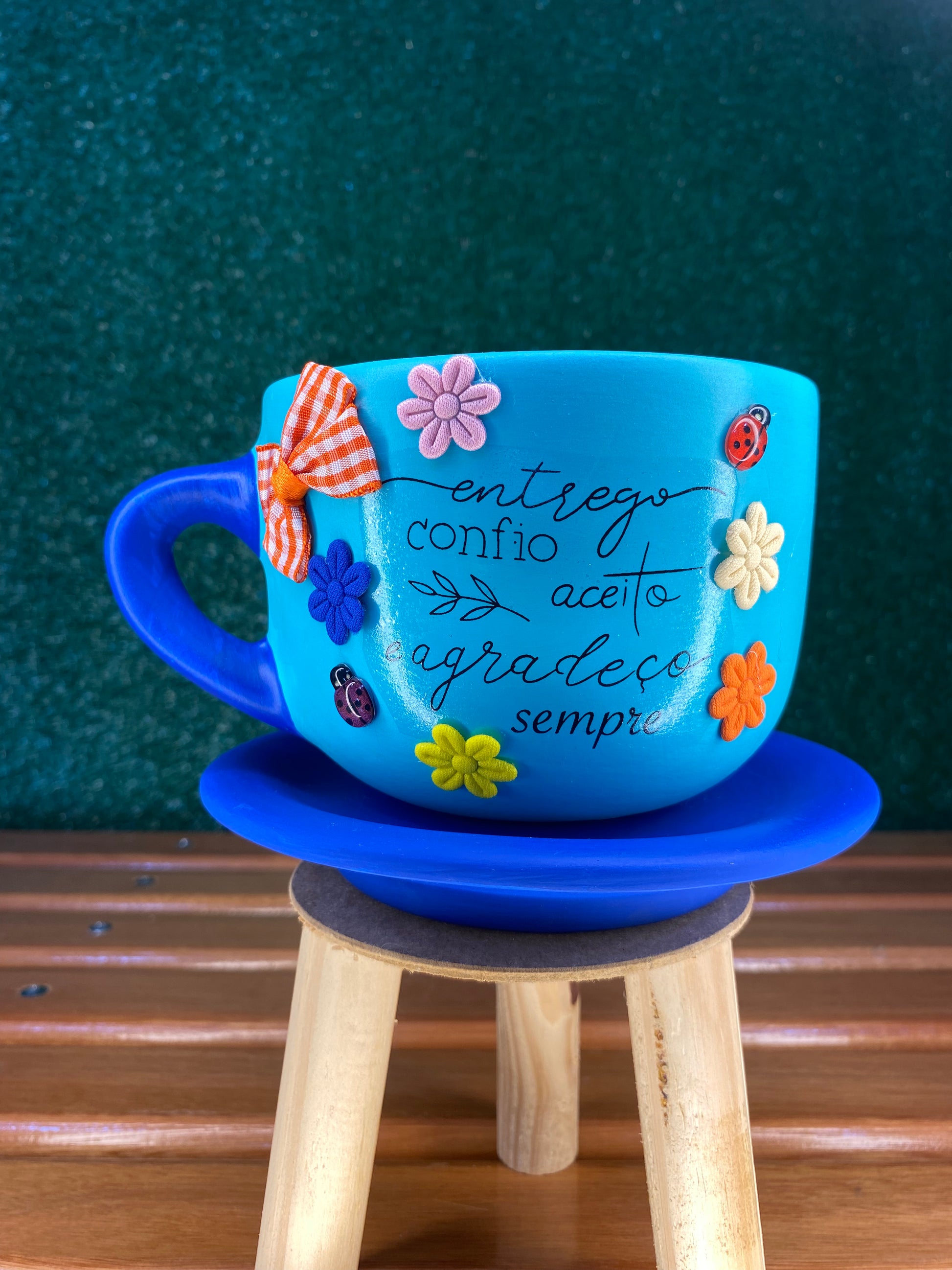 Xícara artesanal azul